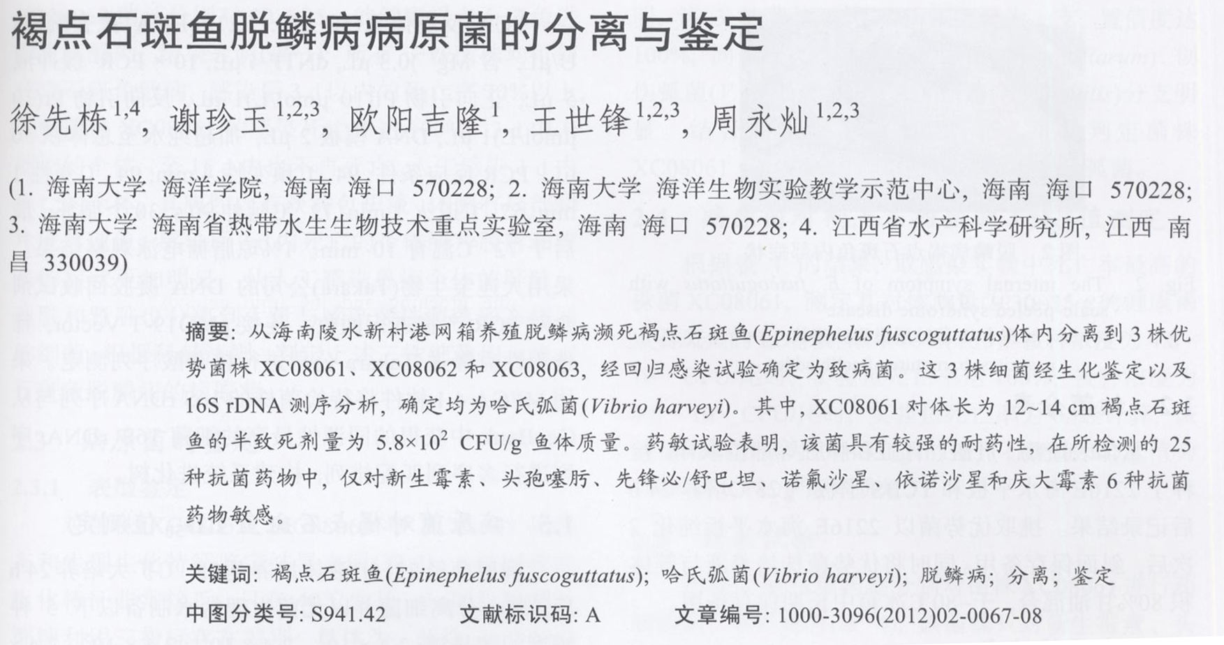 褐點石斑魚脫鱗片病病原菌的分離與鑒定