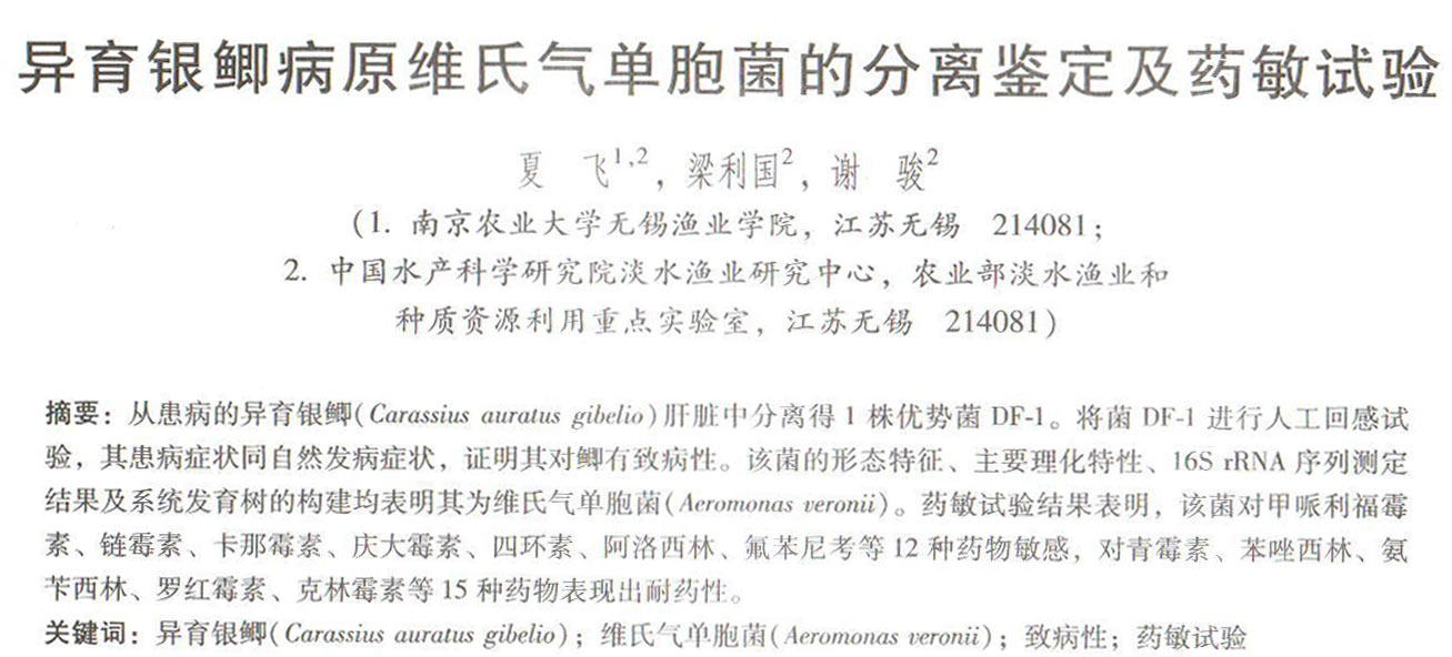 異育銀鯽病原維氏氣單胞菌的分離鑒定及藥敏試驗