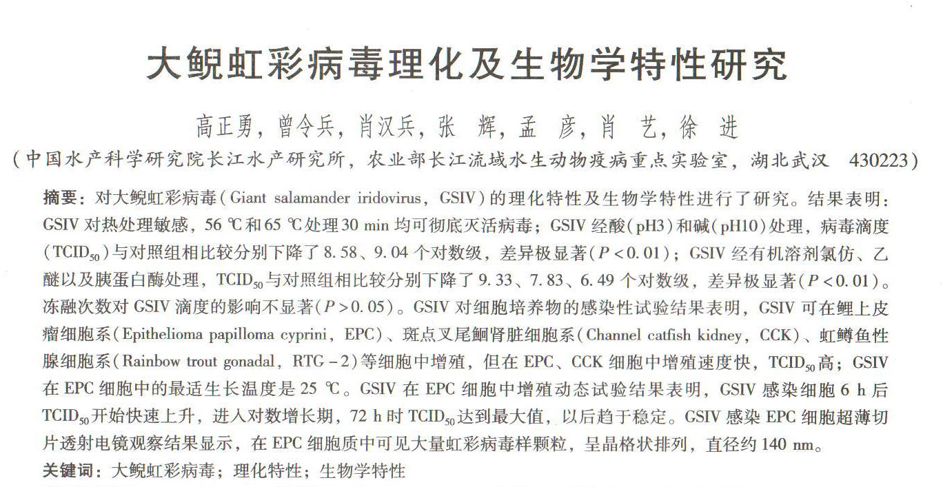 大鯢虹彩病毒理化及生物學(xué)特性研究