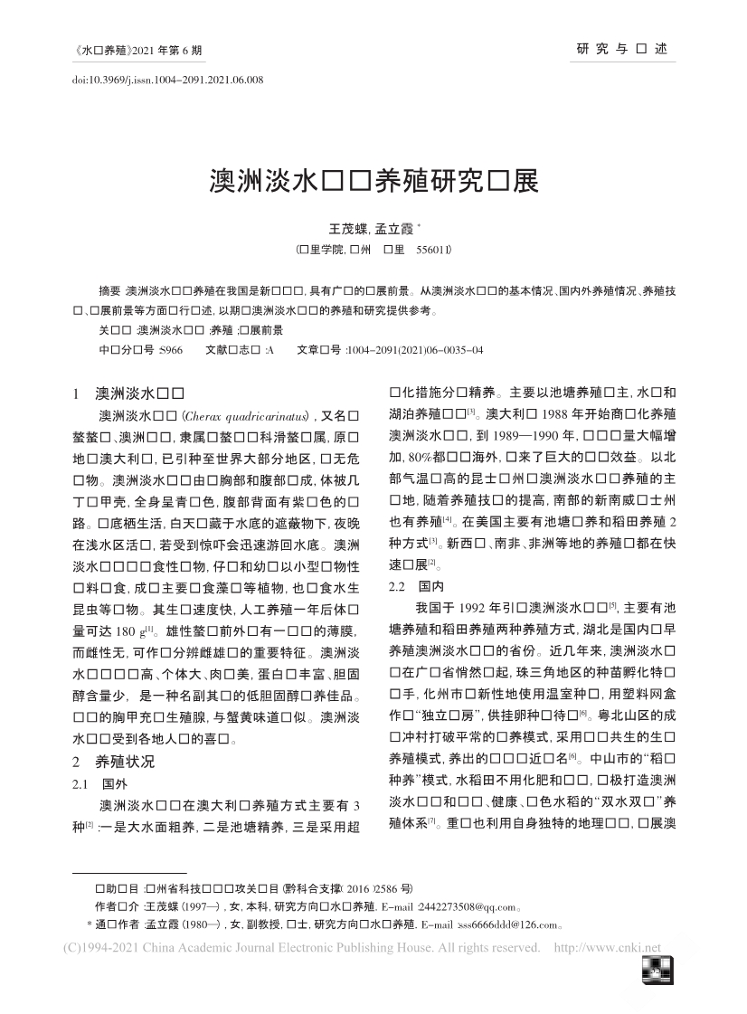 澳洲淡水龍蝦養(yǎng)殖研究進(jìn)展