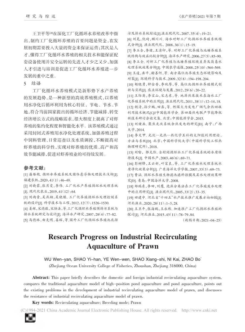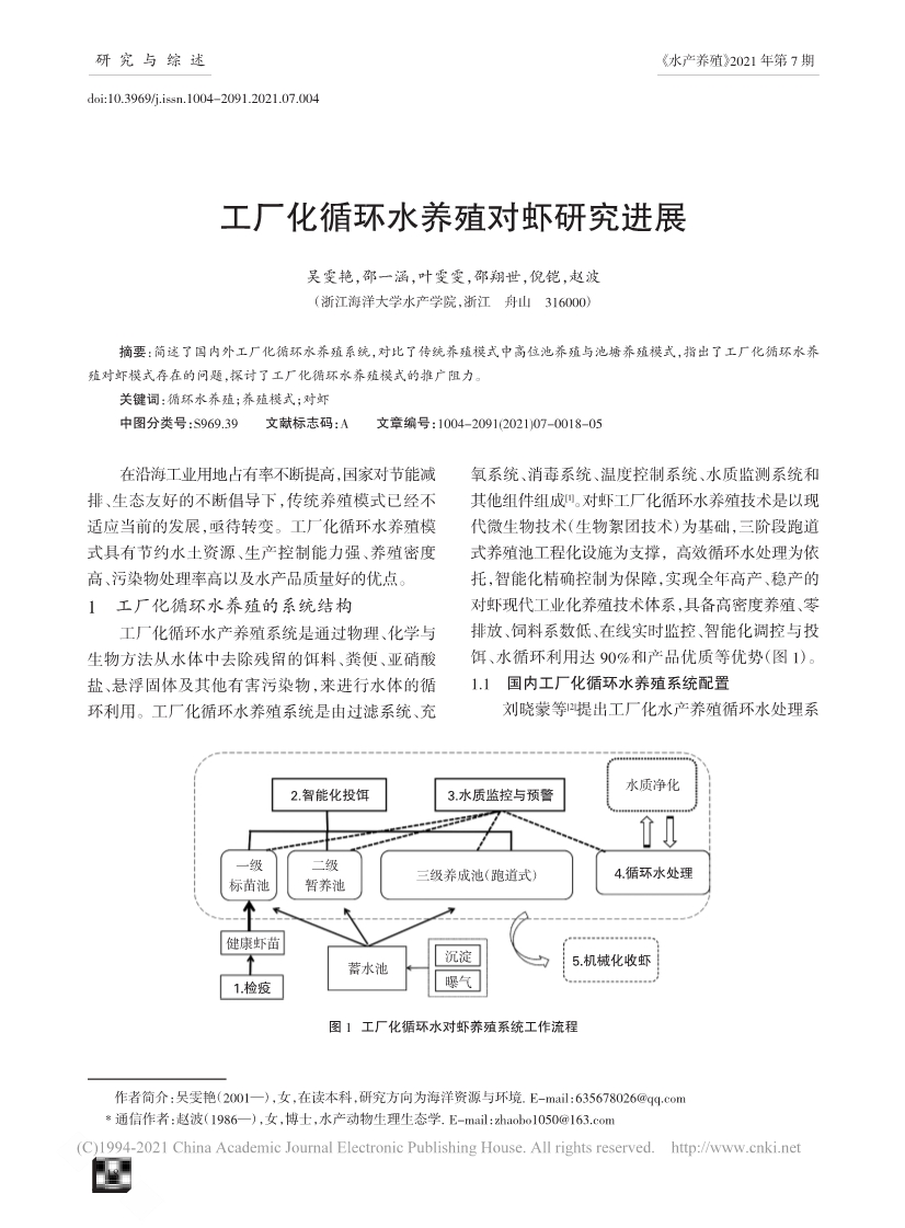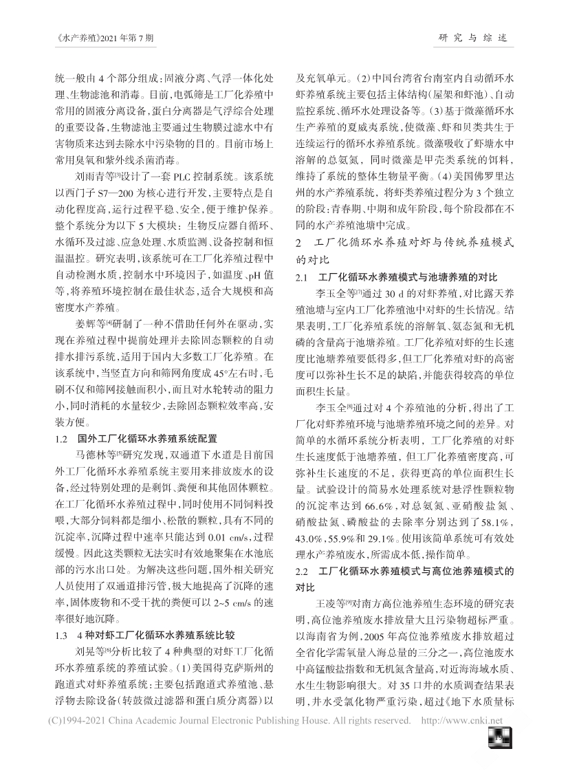 工廠化循環(huán)水養(yǎng)殖對蝦研究進展