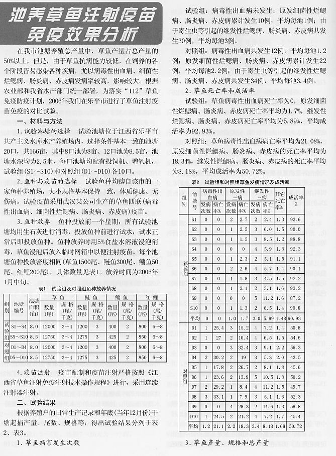 池養(yǎng)草魚注射疫苗免疫效果分析1