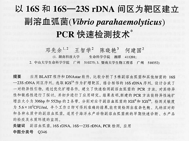 以16S和16S-23SrDNA間區(qū)為靶區(qū)建立副溶血弧菌(Vibrio parahaemo)