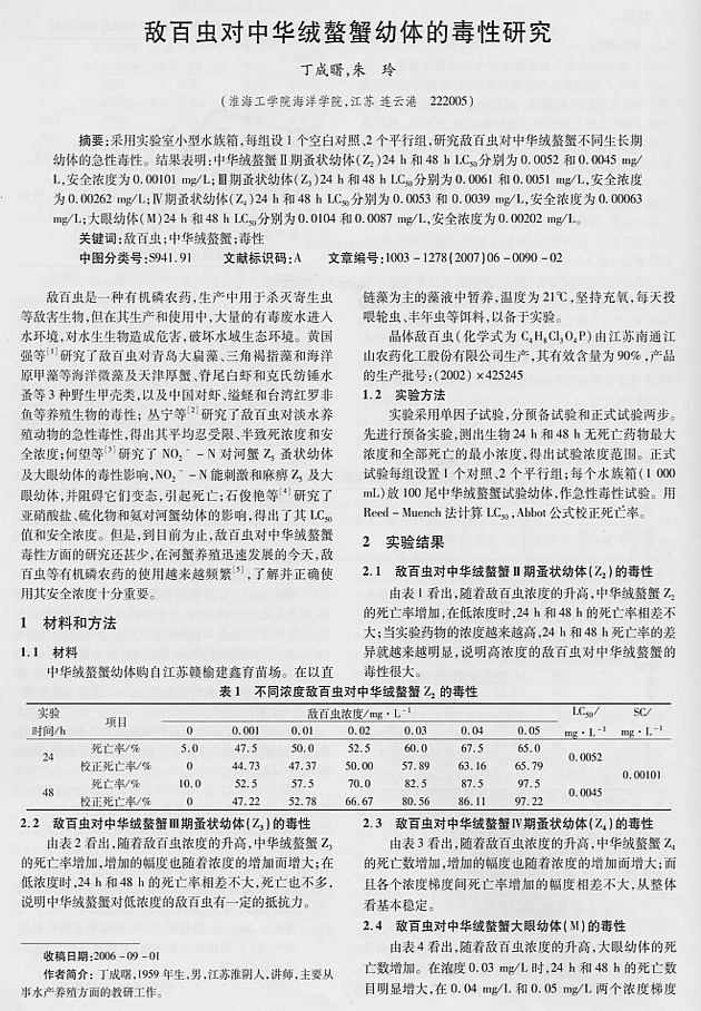敵百蟲(chóng)對(duì)中華絨螯蟹幼體的毒性研究1