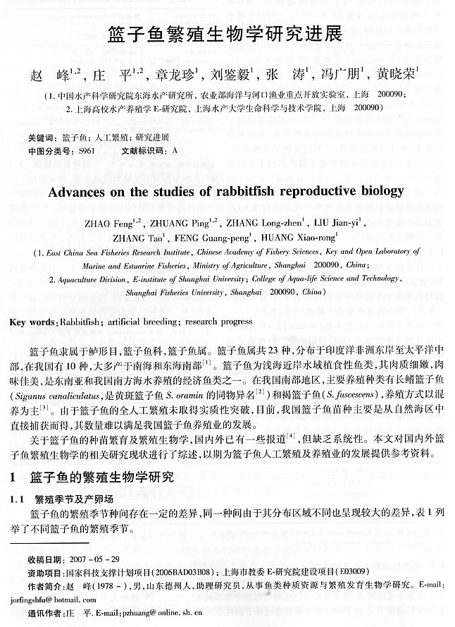 籃子魚繁殖生物學研究進展1