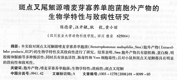 斑點叉尾鮰源嗜麥芽寡養(yǎng)單胞菌胞外產(chǎn)物的生物學特征與致病性研究