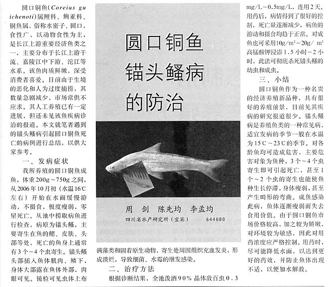 圓口銅魚錨頭鳋病的防治