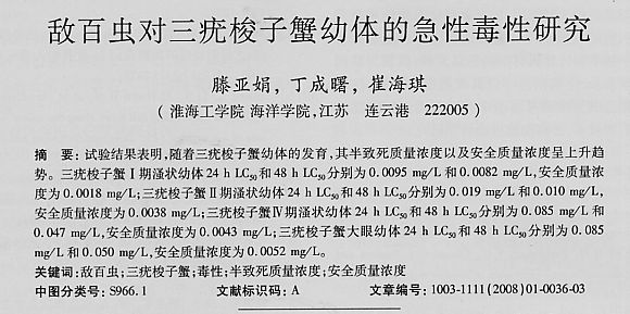 敵百蟲(chóng)對(duì)三疣梭子蟹幼體的急性毒性研究