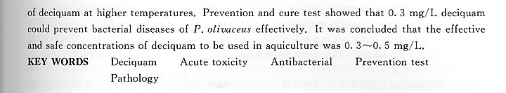 癸甲溴銨對褐牙鲆的急性毒性及抑菌試驗(yàn)2