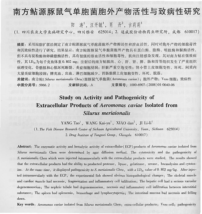 南方鲇源豚鼠氣單胞菌胞外產(chǎn)物活性與致病性研究