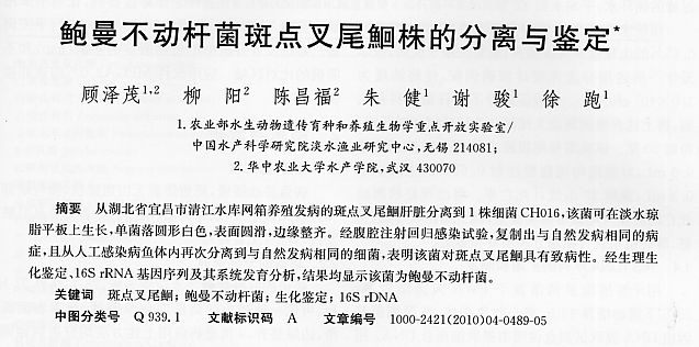 鮑曼不動(dòng)桿菌斑點(diǎn)叉尾鮰株的分離與鑒定
