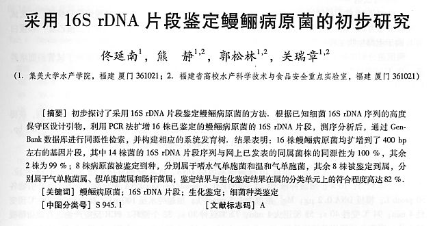 采用16SrDNA片段鑒定鰻鱺病原菌的初步研究