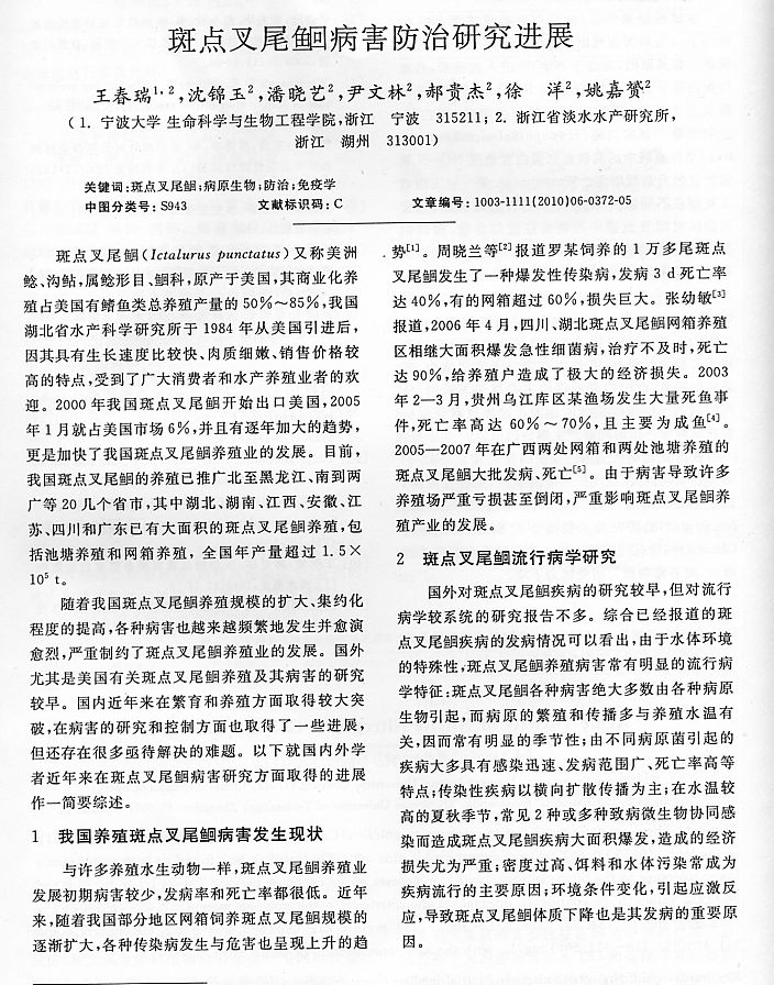斑點叉尾鮰病害防治研究進展1