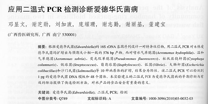 應(yīng)用二溫式PCR檢測診斷愛德華氏病
