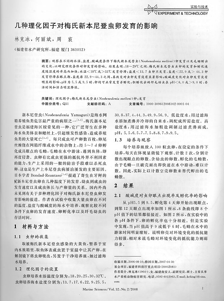 幾種理化因子對(duì)梅氏新本尼登蟲(chóng)卵發(fā)育的影響1