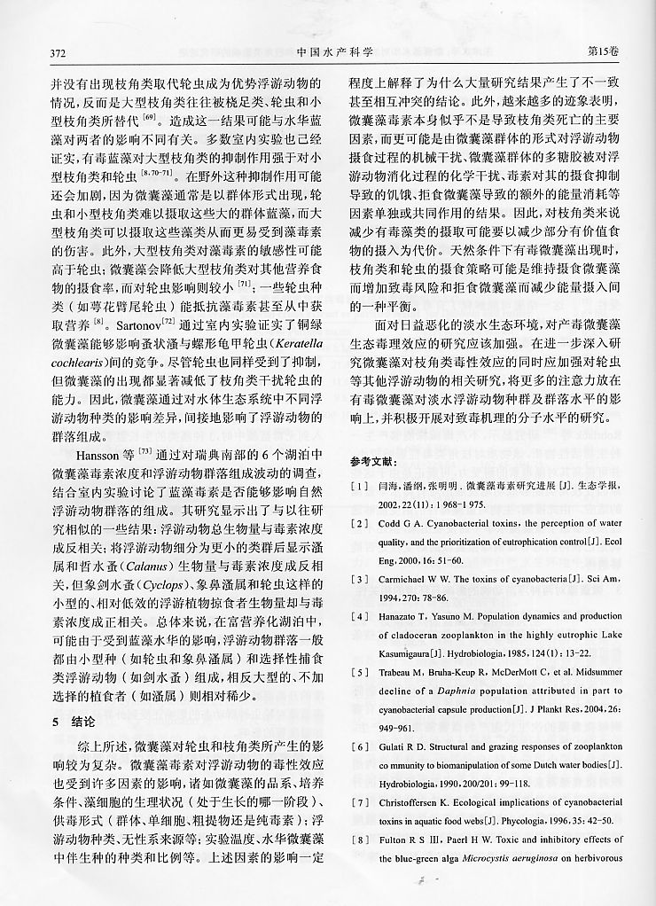 微囊藻水華對淡水浮游動物輪蟲和枝角類影響的研究進展6