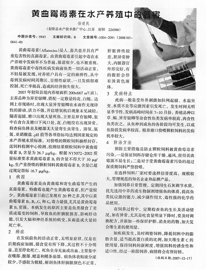 黃曲霉毒素在水產養(yǎng)殖中的危害
