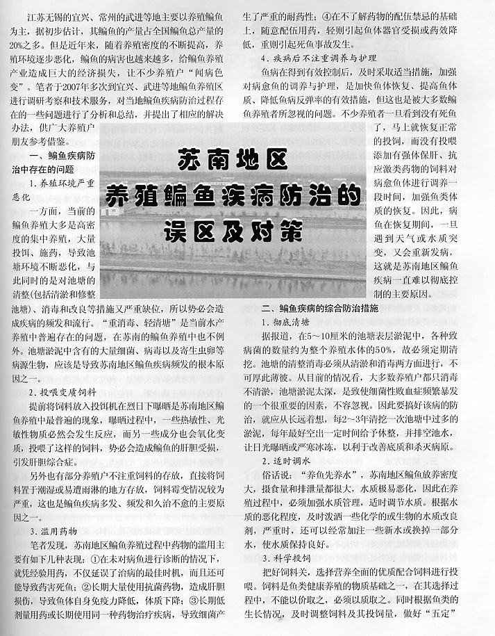 蘇南地區(qū)養(yǎng)殖鳊魚疾病防治的誤區(qū)及對策