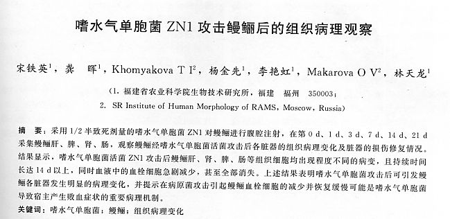 嗜水氣單胞菌ZN1攻擊鰻鱺后的組織病理觀察