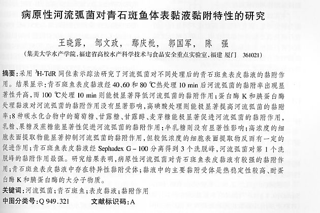 病原性河流弧菌對(duì)青石斑魚體表黏液黏附特性的研究
