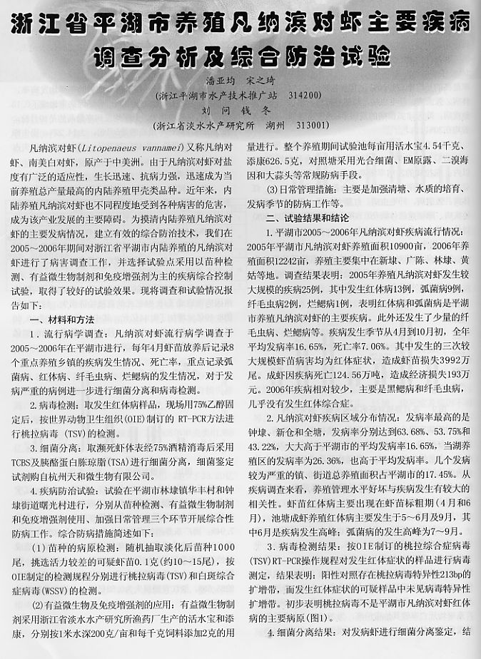 浙江省平湖市養(yǎng)殖凡納濱對蝦主要疾病調(diào)查分析及綜合防治試驗1