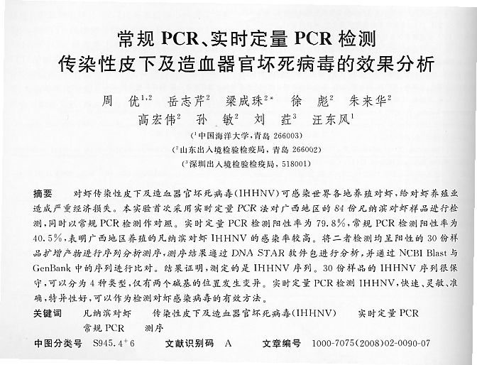 常規(guī)PCR、實(shí)時(shí)定量PCR檢測(cè)傳染性皮下及造血器官壞死病毒的效果分析1