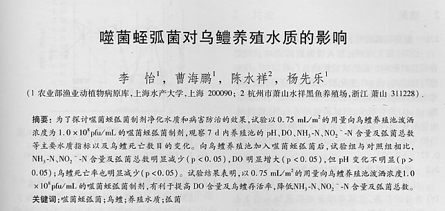 噬菌蛭弧菌對(duì)烏鱧養(yǎng)殖水質(zhì)的影響
