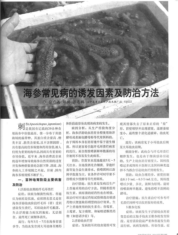 海參常見(jiàn)病的誘發(fā)因素及防治方法1