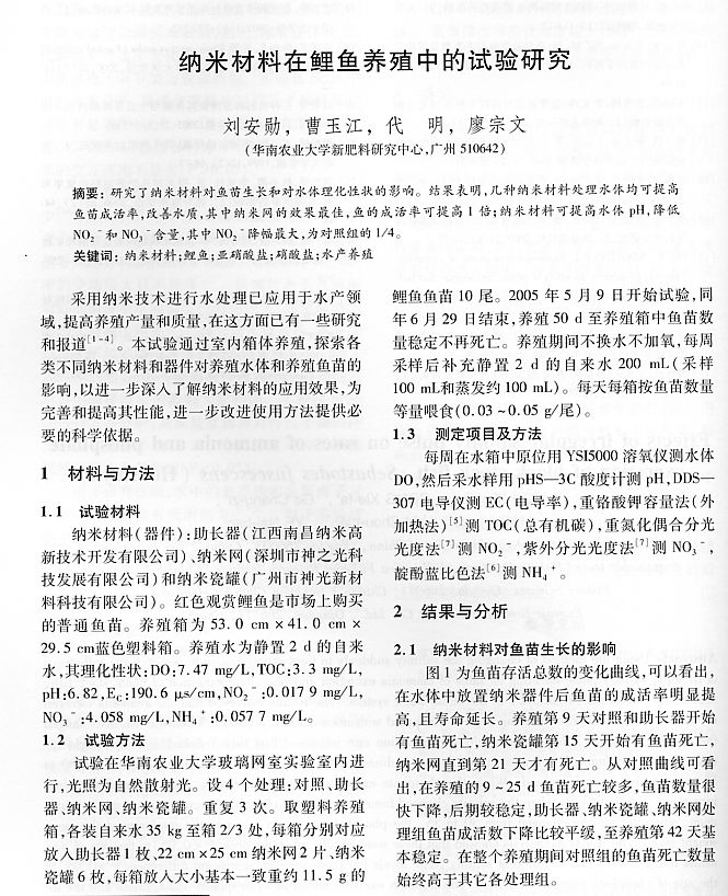 納米材料在鯉魚養(yǎng)殖中的實驗研究1