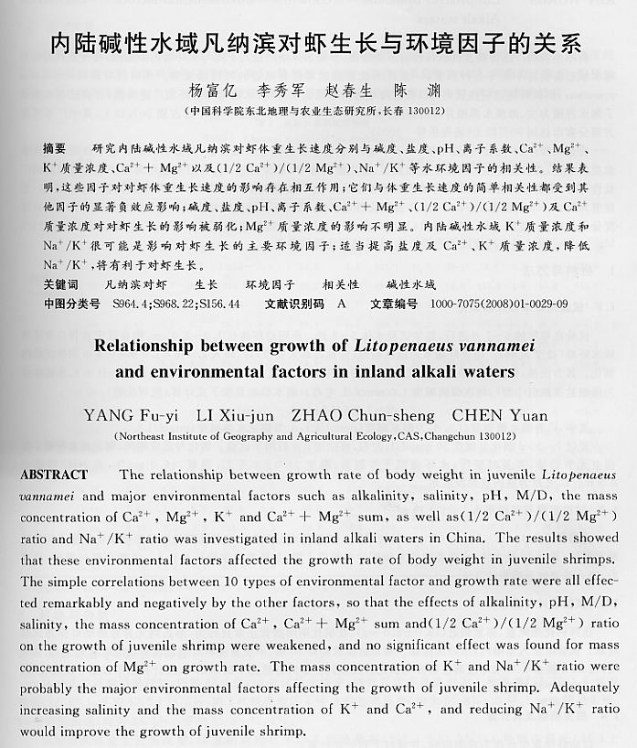 內(nèi)陸堿性水域凡納濱對嚇生長與環(huán)境因子的關(guān)系1