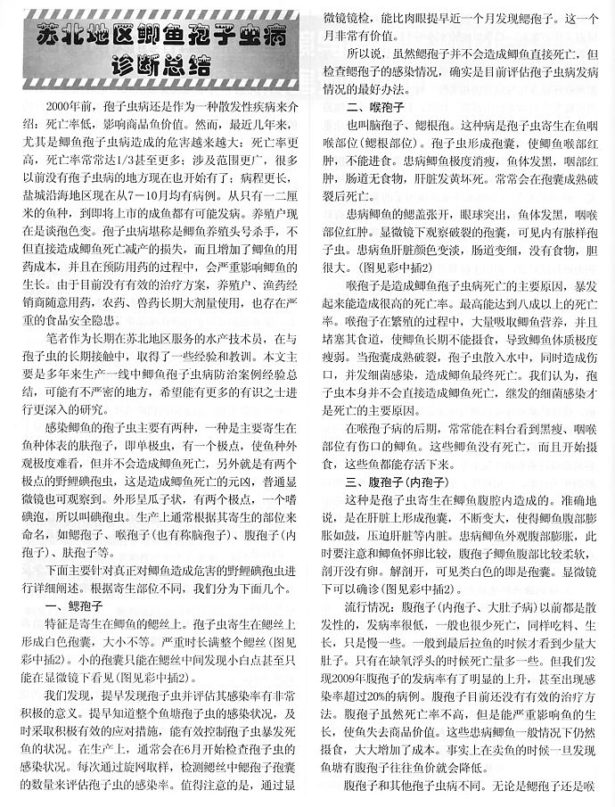 蘇北地區(qū)鯽魚孢子蟲病診斷總結(jié)