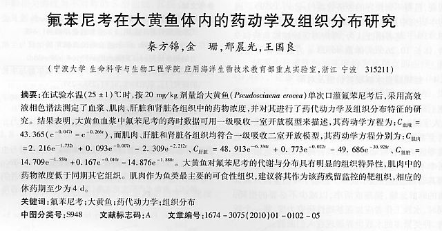 氟苯尼考在大黃魚體內的藥動學及組織分布研究