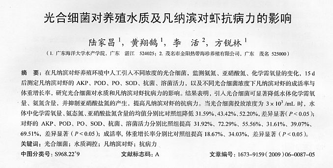 光合細菌對養(yǎng)殖水質(zhì)及凡納濱對蝦抗病力的影響
