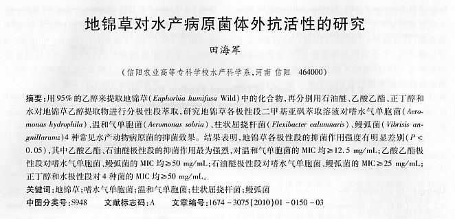 地錦草對(duì)水產(chǎn)病原菌體外抗活性的研究
