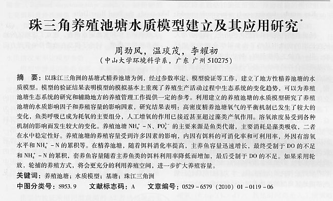 珠三角養(yǎng)殖池塘水質(zhì)模型建立及其應(yīng)用研究