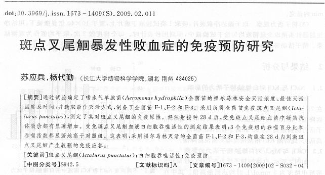 斑點(diǎn)叉尾鮰暴發(fā)性敗血癥的免疫預(yù)防研究