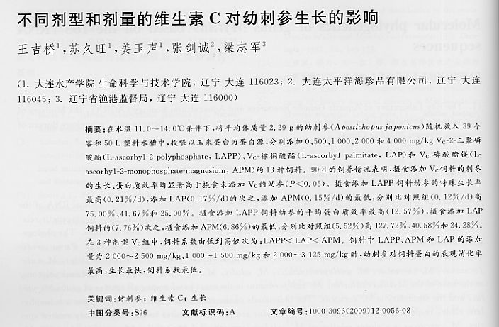 不同劑型和劑量的維生素C對幼刺參生長的影響