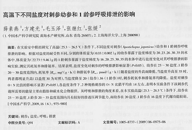 高溫下不同鹽度對刺參幼參和1齡參呼吸排泄的影響