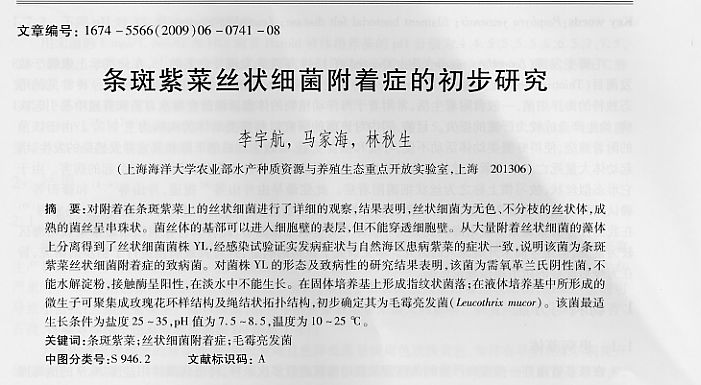 條斑紫菜絲狀細(xì)菌附著癥的初步研究