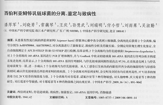西伯利亞鱘停乳鏈球菌的分離、鑒定與致病性