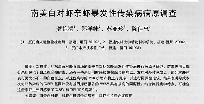 南美白對(duì)蝦親蝦爆發(fā)性傳染病病原調(diào)查