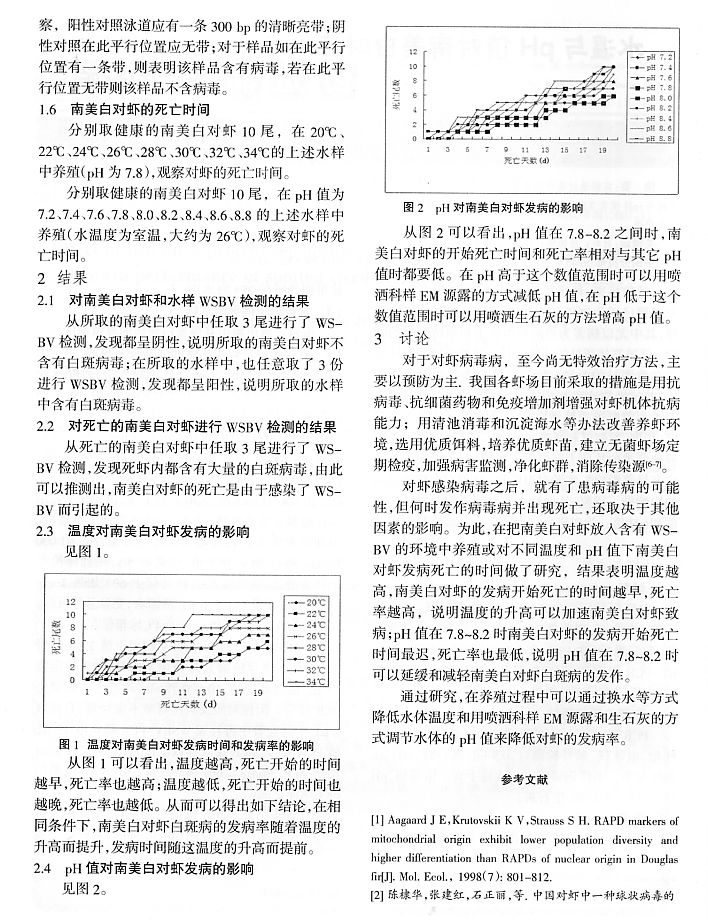 水溫與PH值對(duì)南美白對(duì)蝦白斑病發(fā)病的影響2