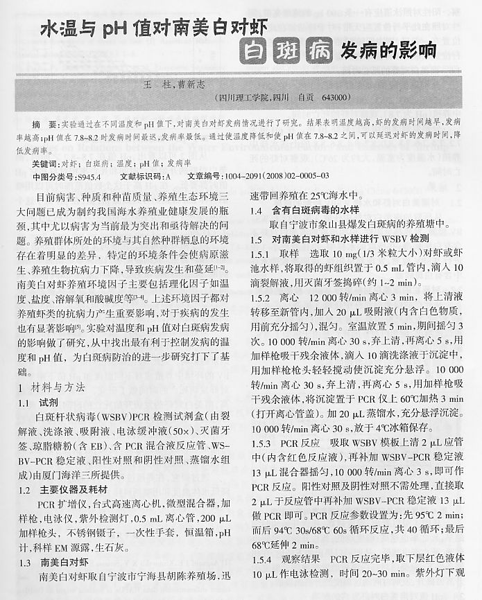 水溫與PH值對南美白對蝦白斑病發(fā)病的影響1