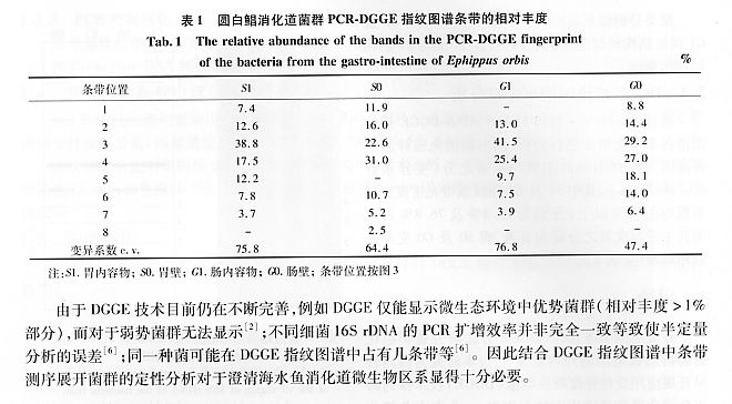 圓白鯧消化道菌群PCR-DGGE基因指紋圖譜構(gòu)建3