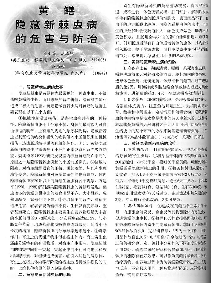 黃鱔隱藏新棘蟲病的危害與防治