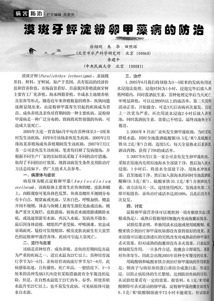 漠斑牙鲆淀粉卵甲藻病的防治1