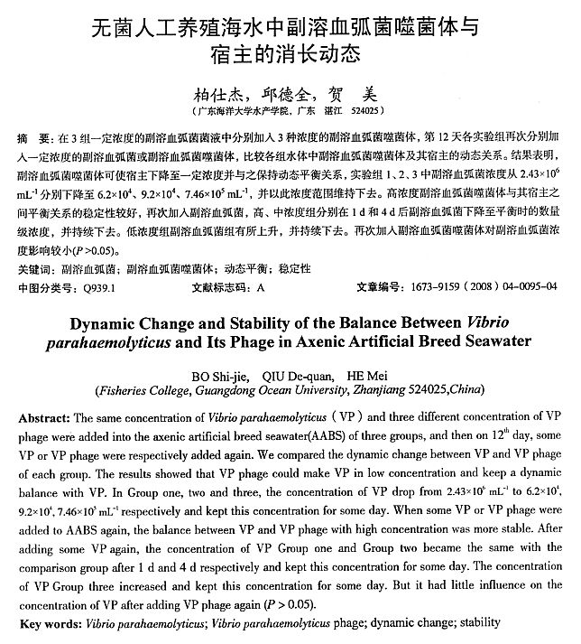 無菌人工養(yǎng)殖海水中副溶血弧菌噬菌體與宿主的消才動(dòng)態(tài)
