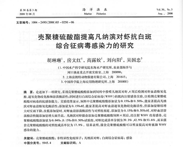 殼聚糖硫酸脂提高凡納濱對蝦抗白斑綜合征病毒感染力的研究