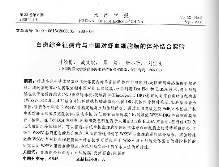 白斑綜合征病毒與中國(guó)對(duì)蝦血細(xì)胞膜的體外結(jié)合實(shí)驗(yàn)