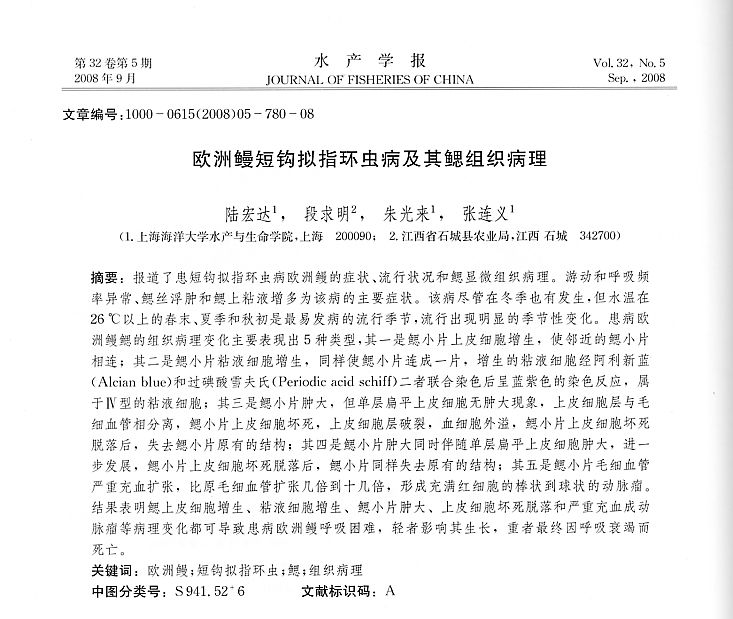 歐洲鰻短鉤擬指環(huán)蟲(chóng)病及其鰓組織病理